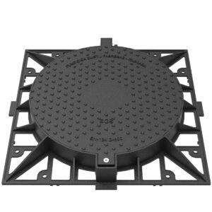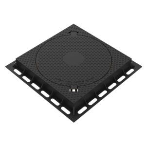Kits de moldura/tampa ou aro/tampa para inspeção de canalizações diversas. Tampas rebatíveis e articuladas, disponíveis em diferentes medidas, compactas ou com grelha.