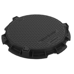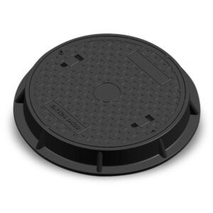 Kits de aro e tampa redonda para inspeção de canalizações diversas, fabricados em material compósito. Tampas rebatíveis e articuladas disponíveis em diferentes medidas.