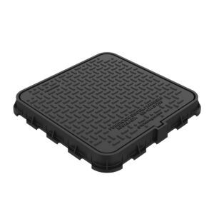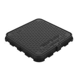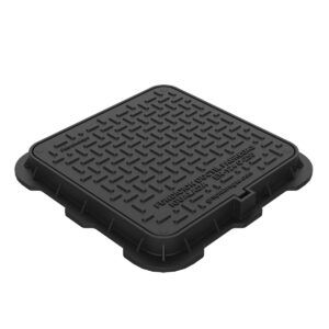 Conjuntos de tampas hidráulicas quadradas com moldura, fabricados em material compósito. Disponíveis em diferentes medidas, em conformidade com a normativa aplicável.